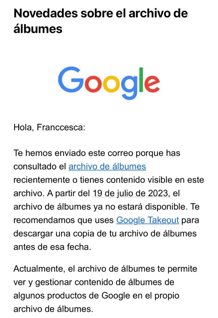 En un intento por limpiar sus servidores y enfocarse en nuevos cambios, Google sorprendió a una gran cantidad de usuarios al informar a través de un correo electrónico que desactivarán el servicio de Archivo de Álbumes y recomendó realizar una pronta copia de seguridad de todo el contenido multimedia.