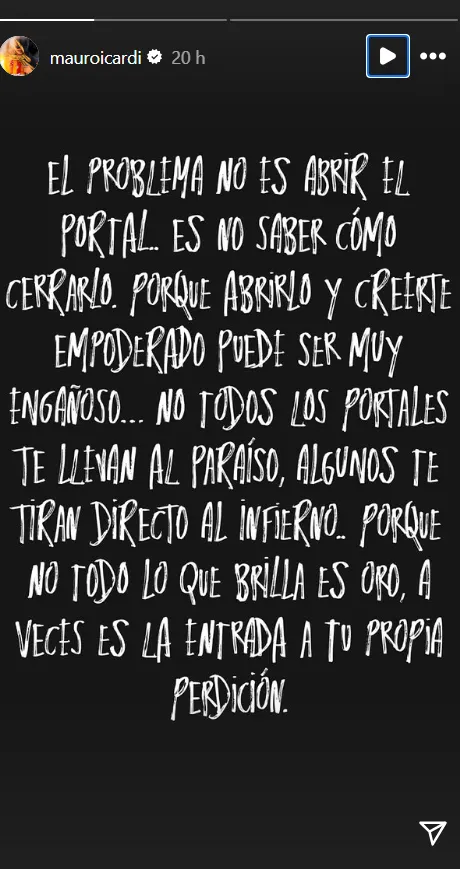 “No todos los portales te llevan al paraíso, algunos te tiran directo al infierno, no todo lo que brilla es oro, a veces es la entrada a tu propia perdición“, agregó Icardi, en una especie de reflexión con la que hasta Ricardo Arjona se sonrojaría.