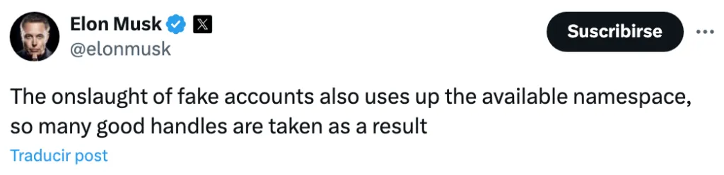 Esto confirma que sus actuales políticas y la integración de su Inteligencia Artificial (IA) no son suficientes para combatir contra las cuentas falsas o bots. “La avalancha de cuentas falsas también agota el espacio de nombres disponible, por lo que muchas buenas cuentas se quedan sin espacio”, sentenció.