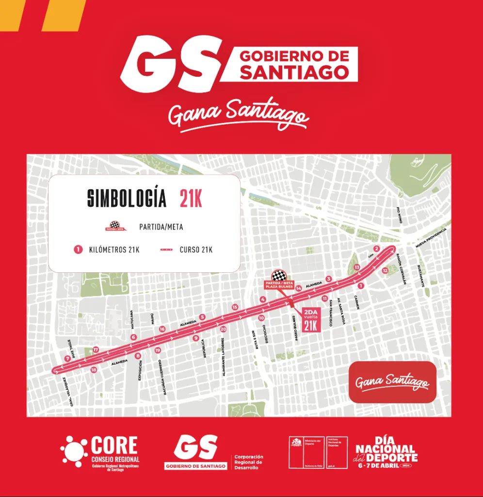 Esta segunda edición de la carrera se desarrollará en toda la extensión del eje Alameda entre el cruce de Av. Las Rejas y Plaza Baquedano.
