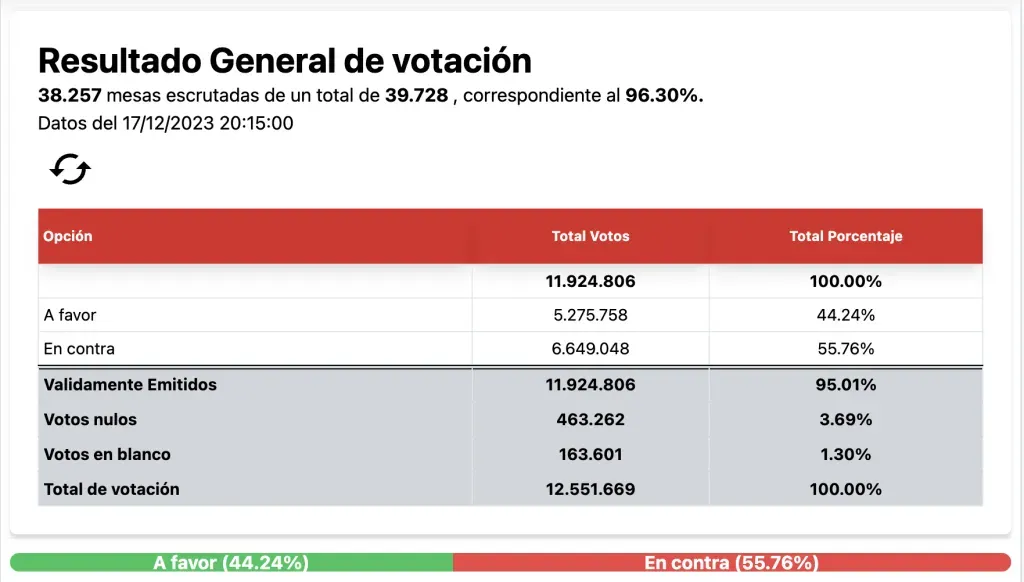 Con este resultado, la nueva Constitución del Consejo Constitucional elegido en mayo del 2023 fue rechazada y quedará en el olvido tal como la anterior propuesta el año pasado.