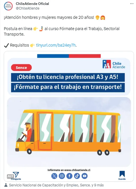 Con el objetivo de aumentar las posibilidades de inserción laboral de hombres y mujeres, se creó el programa “Fórmate para el Trabajo, Sectorial Transporte”, el cual ofrece cursos gratuitos para obtener la licencia de conducir profesional clases A-3 y A-5.