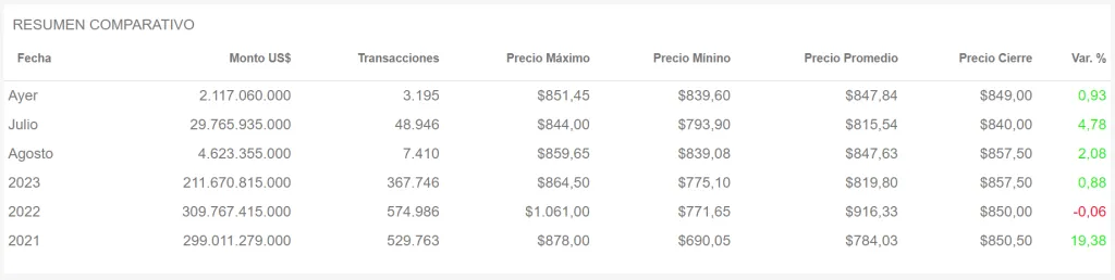 Mira el resumen comparativo del dólar de la Bolsa Electrónica de Chile: