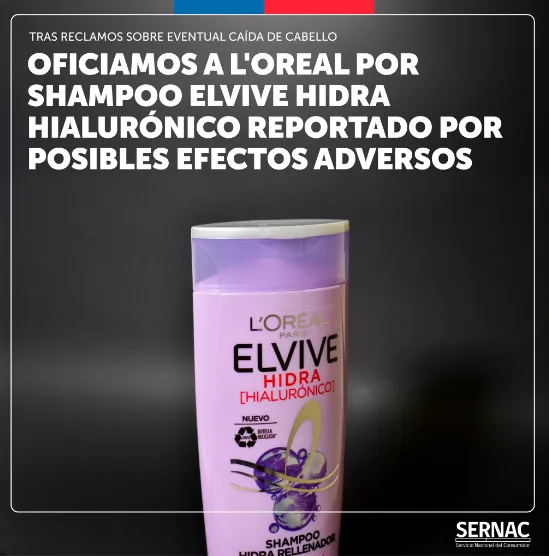 “Tras reclamos y alertas en redes sociales por Elvive Hidra Hialurónico, oficiamos a L’Oreal Chile para que nos informe sobre reclamos recibidos y los resultados de los análisis de laboratorio del producto”, además destacaron que ante problemas, se debe suspender su uso y reportar en www.sernac.cl.