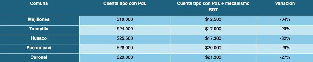 Se trata de comunas que cuentan con centrales de generación a carbón, la cual se aplicará el Mecanismo de Reconocimiento de Generación Territorial (RGT), entre ellas: