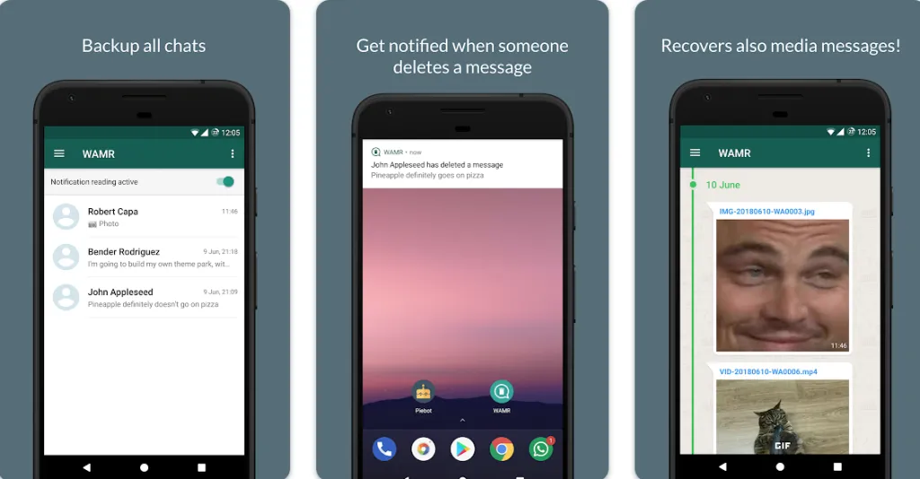 Existen varias alternativas, y una de ellas es una aplicación llamada WAMR. Esta aplicación te permite recuperar mensajes eliminados no solo de WhatsApp, sino también de Messenger, Telegram e Instagram.