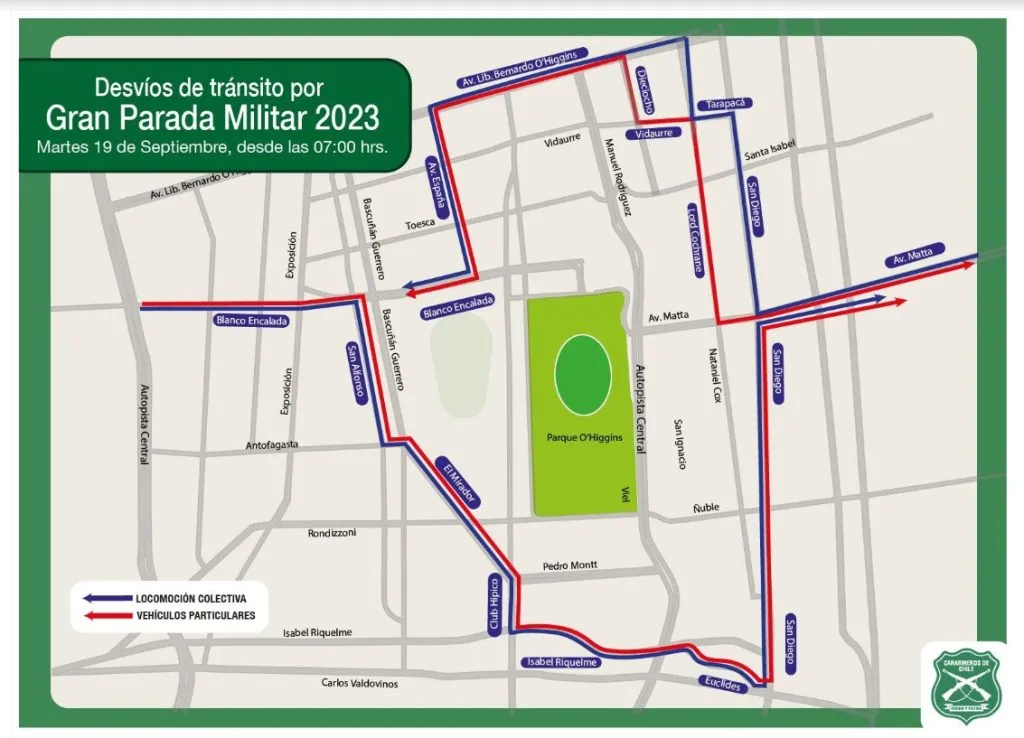 Este martes 19 de septiembre se aplicarán desvíos de tránsito desde las 7:00 horas en las inmediaciones del Parque O’Higgins.