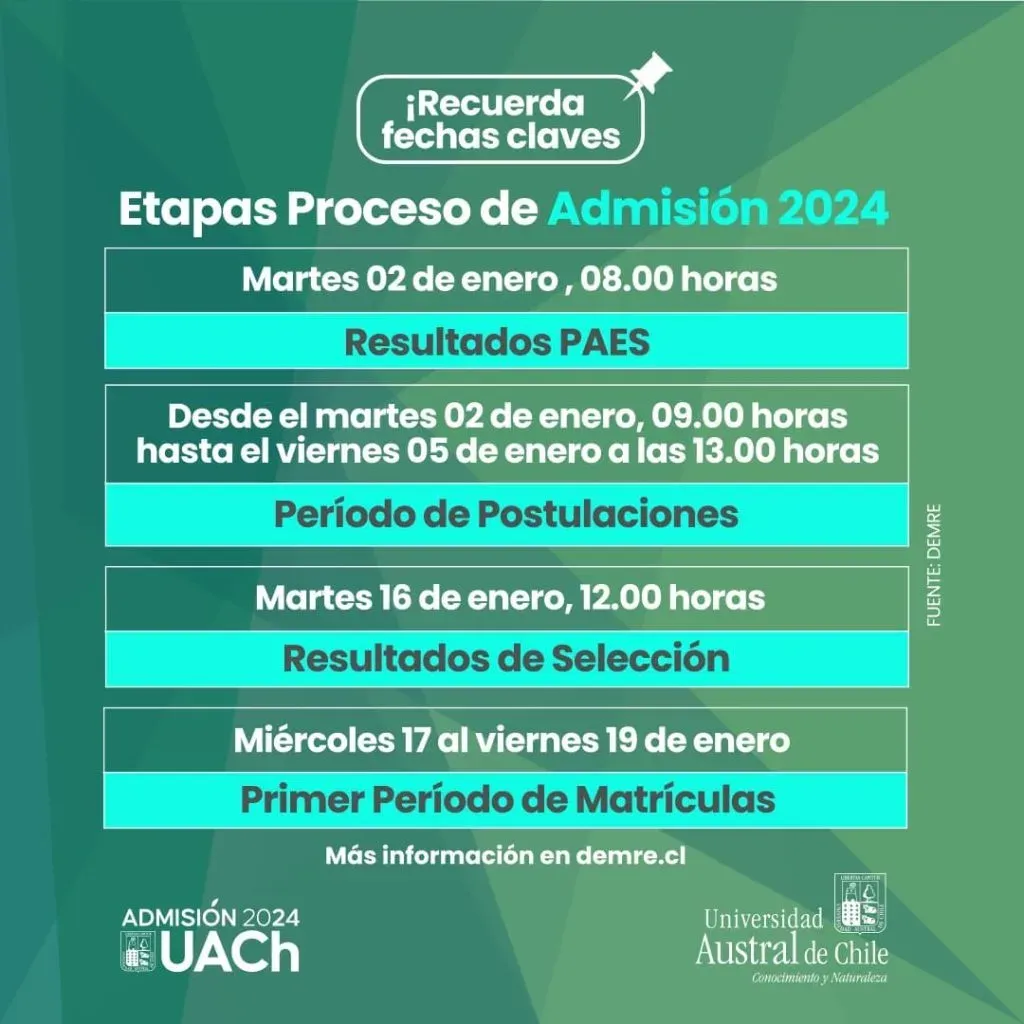 - Sábado 20 de enero de 2024: Proceso de Matrícula: Inicio de segunda etapa