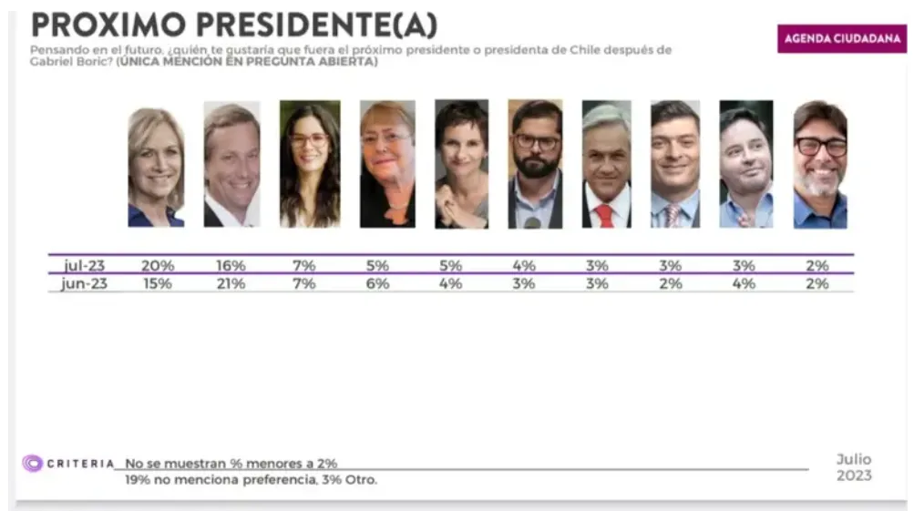 La encuesta Criteria Research publicó los resultados de su edición del mes de julio, en donde se consultó a las personas sobre sus preferencias presidenciales, aprobación del presidente de la República, percepción del Consejo Constitucional, entre otros temas relevantes de la actualidad nacional.