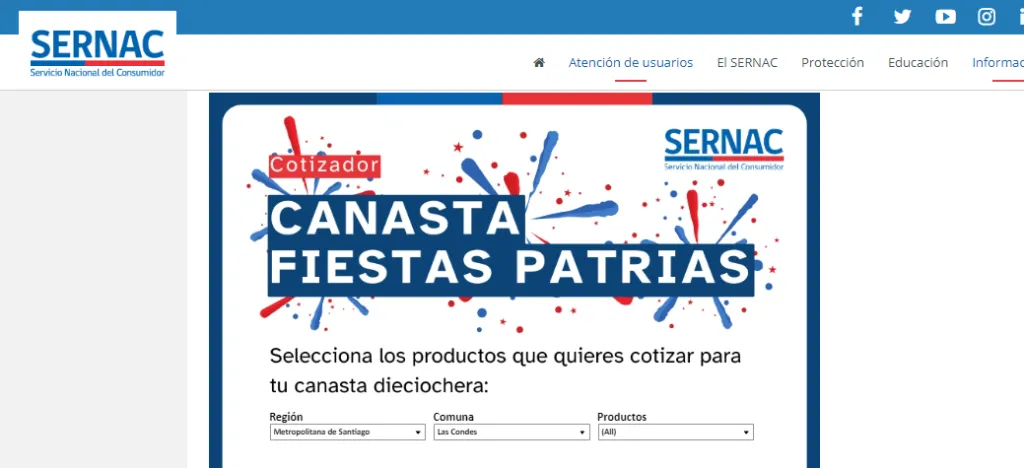 Sernac habilitó un cotizador online de canastas para Fiestas Patrias, donde es posible filtrar por región, comuna y productos.