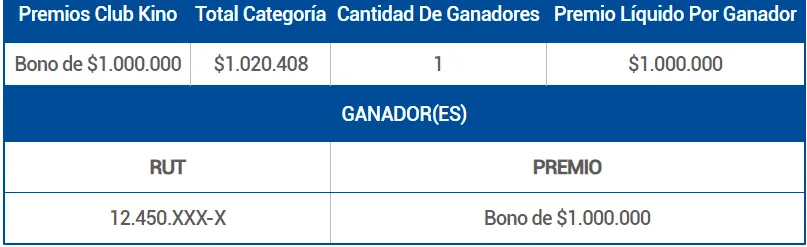 - Club Kino: Bono de $1.000.000.