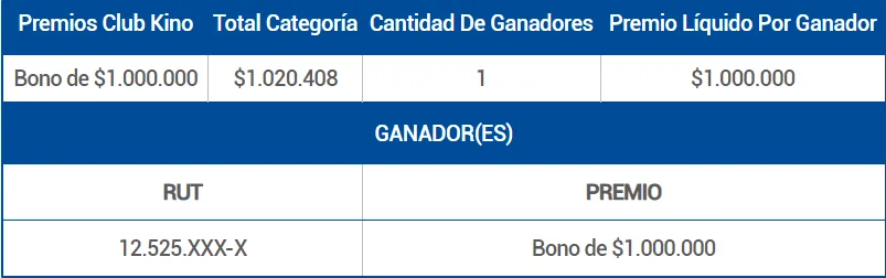 El premio total de 5.500 millones de pesos del Kino de hoy se reparte de la siguiente manera: