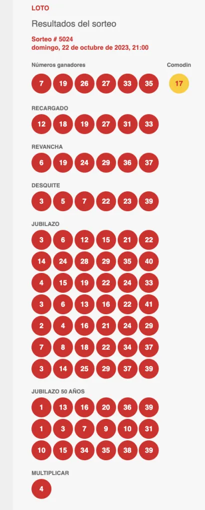 Para determinar la combinación ganadora se extraen 6 balotas de una tómbola que contiene 41 numeradas correlativamente del 1 al 41 y luego una séptima denominada “Comodín”.