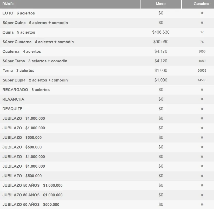 El próximo sorteo es el martes 23 de abril a las 21:00 horas. El monto acumulado es $11.300 millones que se reparte entre las siguientes categorías: