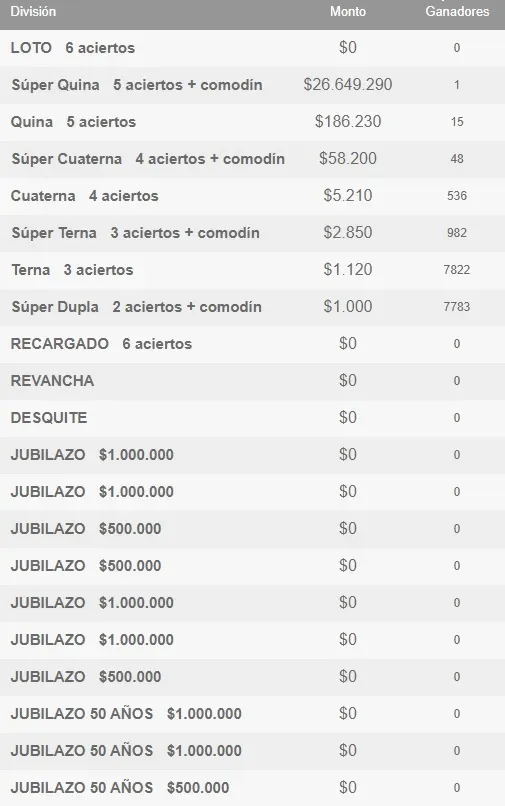 Sí, una persona se llevó más de $26 millones en la categoría Super Quina 5 aciertos + comodín. También hay ganadores en otras categorías: