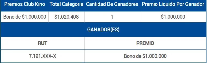 - Club Kino: 1 bono de $1.000.000.
