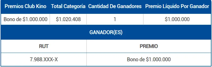 - Club Kino: 1 bono de $1.000.000.