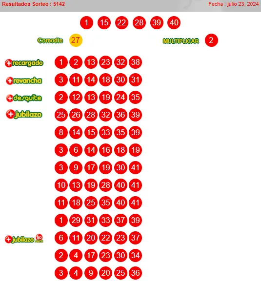 Los números ganadores son: 1, 15, 22, 28, 39, 40 y comodín 27.