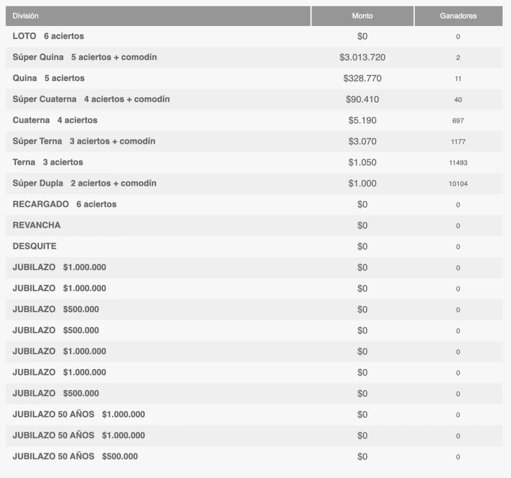 - $3.000: Loto + Recargado + Revancha + Desquite + Jubilazo + Multiplicar