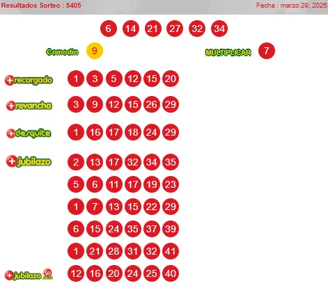 Números ganadores: 6, 14, 21, 27, 32, 34 y comodín 9.