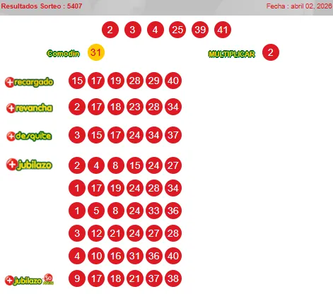 Números ganadores: 2, 3, 4, 25, 39, 41 y comodín 31.