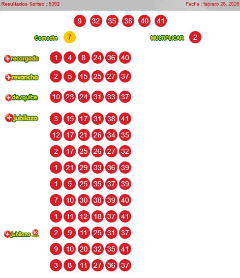 Números ganadores: 9, 32, 35, 38, 40, 41 y comodín 7.