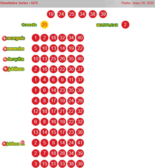 Números ganadores: 19, 24, 25, 34, 38, 39 y comodín 20