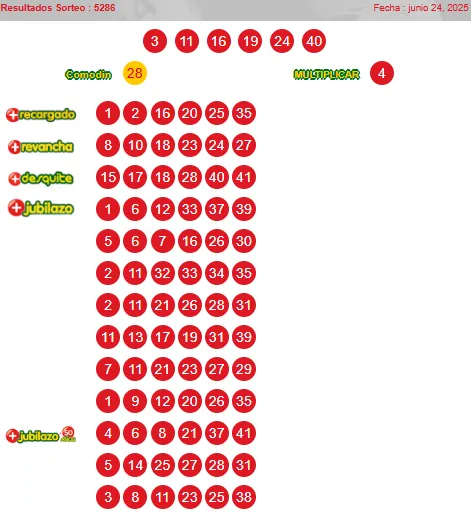 Números ganadores: 3, 11, 16, 19, 24, 40 y comodín 28.