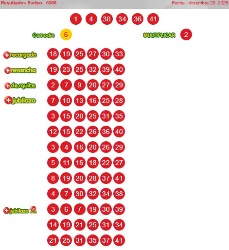 Números ganadores: 1, 4, 30, 34, 36, 41 y comodín 6.