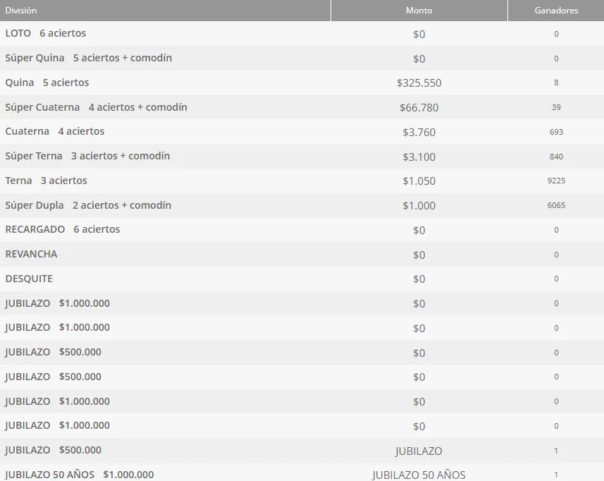 El sorteo del Loto no dejó a ganadores de la categoría Loto 6 aciertos y Súper Quina este jueves, pero sí tuvo a afortunados ganadores de otras categorías como Quina, Súper cuaterna, entre otros premios, además de dos ganadores de las categorías Jubilazo y Jubilazo 50 años respectivamente. Revisa los ganadores: