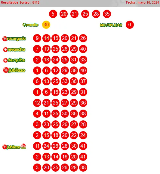 5, 20, 21, 25, 28, 35 y comodín 30