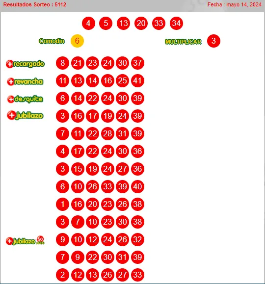 Resultados anteriores del Loto sorteo 5112