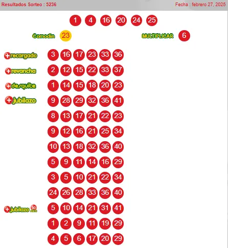 Los números ganadores son: 1, 4, 16, 20, 24, 25 y comodín 23