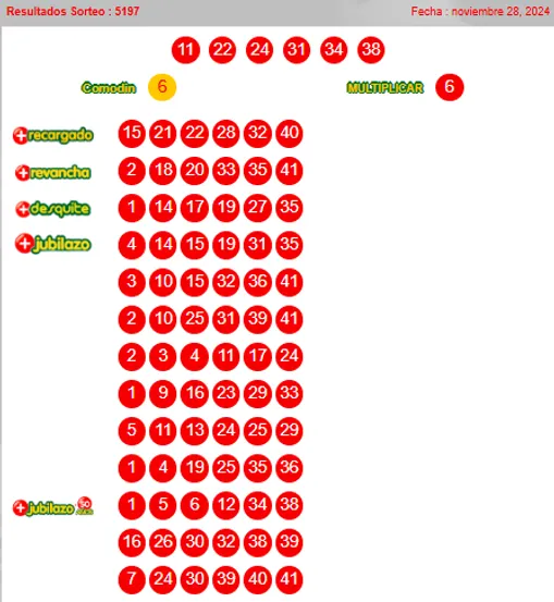Los números ganadores son: 11, 22, 24, 31, 34, 38 y comodín 6