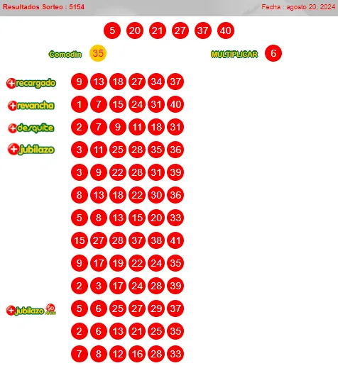 5, 20, 21, 27, 37, 40 y comodín 35