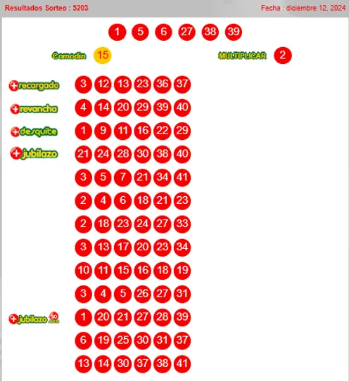 1, 5, 6, 27, 38, 39 y comodín 15