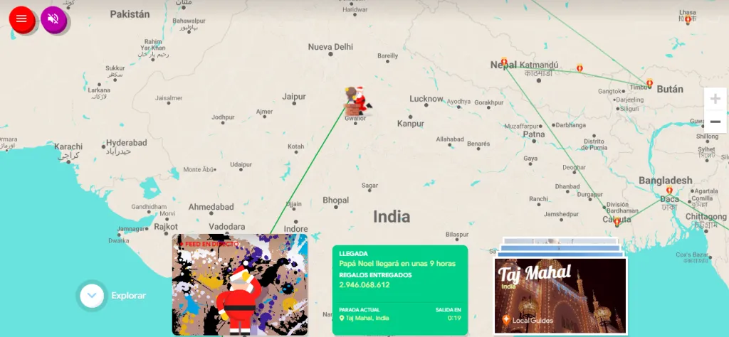 Desde el sitio de Santa Tracker, se puede rastrear el progreso del viaje del Viejito Pascuero en tiempo real, incluyendo su ubicación exacta, los kilómetros recorridos y la cantidad de regalos entregados.