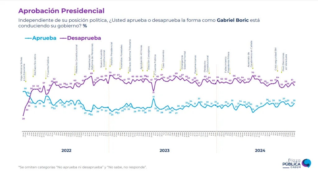Revisa a continuación el registro histórico de Gabriel Boric de acuerdo a Cadem: