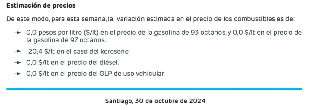 - Bencina de 97 octanos: No hubo variaciones.