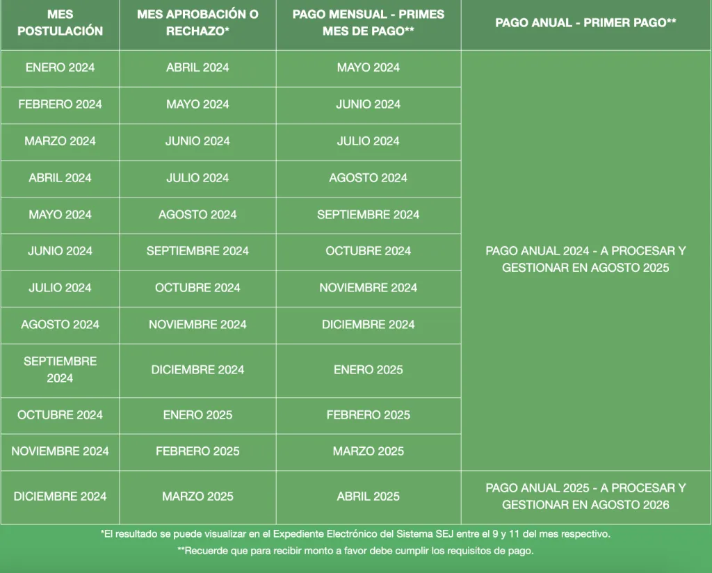 Es decir, si postulaste en noviembre de 2023, recibirás la respuesta aprobada o rechazada del beneficio en febrero, y un mes mas tarde (marzo), será el primer pago mensual.