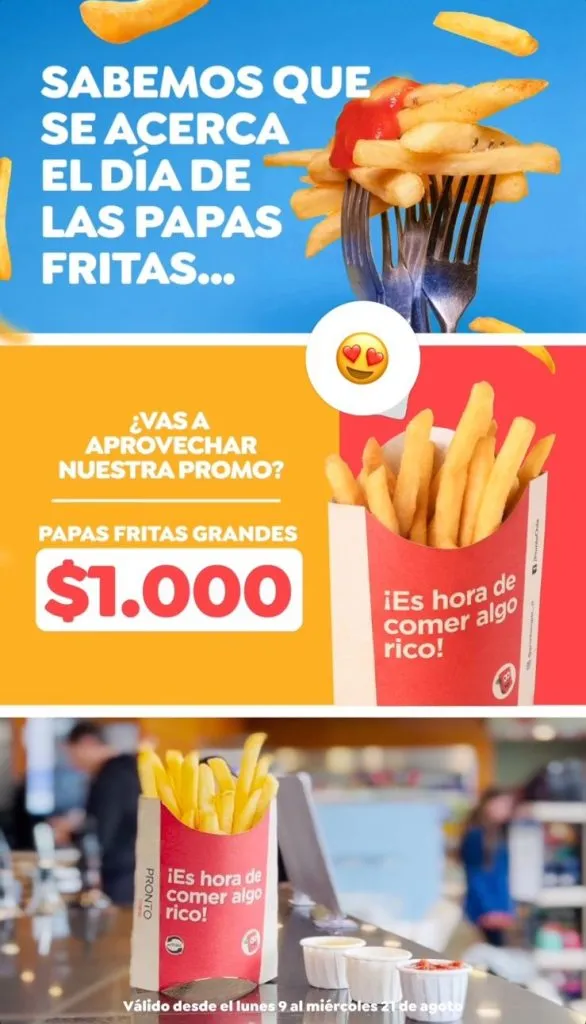 La oferta anunciada es que las papas fritas grandes estarán a $1.000, promoción válida hasta el miércoles 21 de agosto.