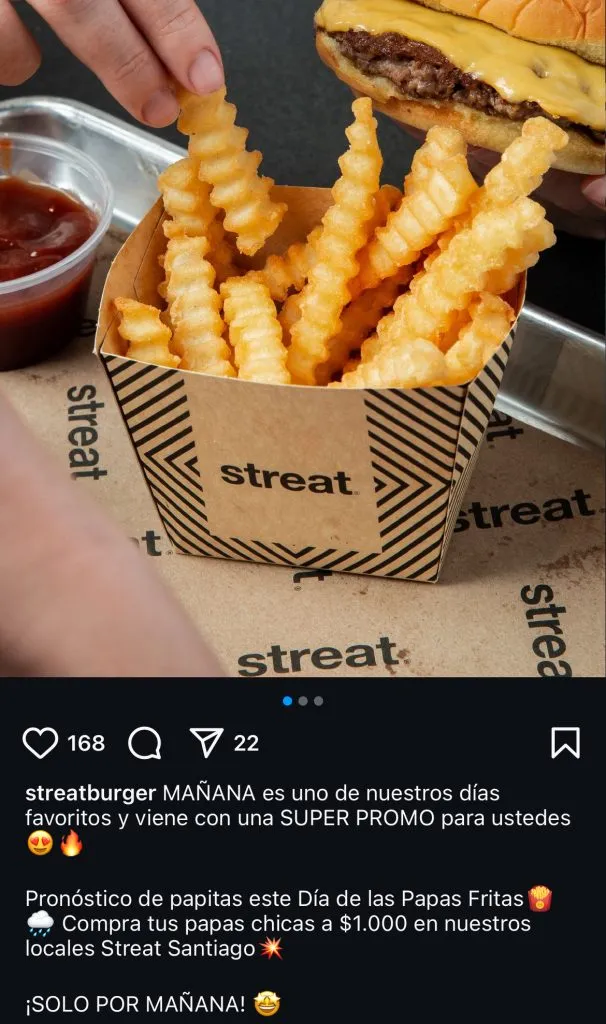 Y esta es la de por mil pesos podrán comprar unas papas fritas chicas en todos los locales de Santiago. Esto sin comprar nada adicional, según informan en su publicación en Instagram.