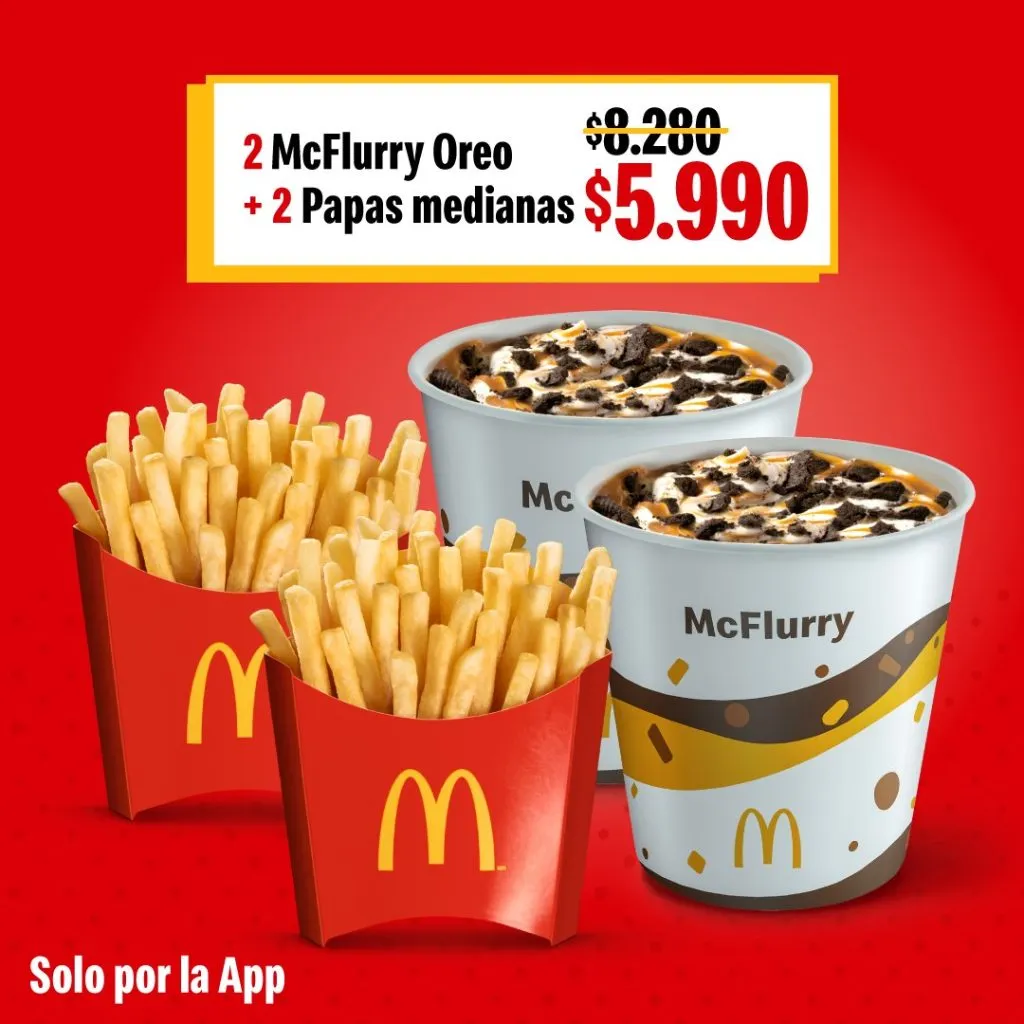 - 2 papas medianas + 2 McFlurry Oreo $5.990