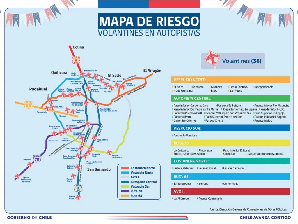 Con la llegada de las fiestas patrias, el tradicional vuelo de volantines vuelve a ser una de las actividades favoritas en Chile. Sin embargo, para evitar accidentes y garantizar la seguridad de todos, las autoridades detectaron las zonas de alto riesgo en Santiago para elevar volantines.