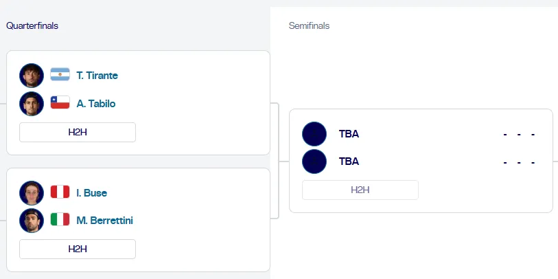 El vencedor del duelo entre Alejandro Tabilo y Thiago Tirante avanzará a las semifinales del ATP 500 de Río de Janeiro, donde se medirá al ganador de la llave que animen el peruano, Ignacio Buse (91°) y el italiano, Matteo Berrettini (57°).