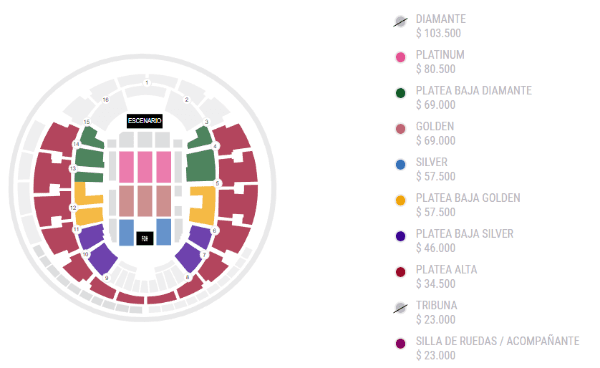 Platea Baja Diamante: $69.000