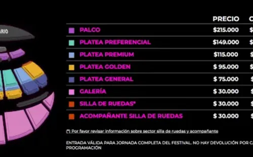 Los boletos se pueden adquirir a través del sistema Punto Ticket, con valores entre los 34.500 y los 247.250 pesos.