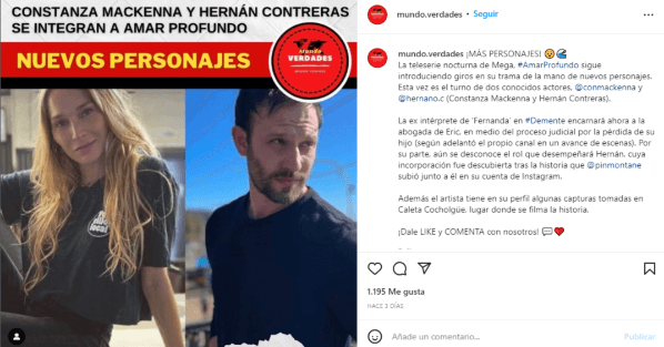 Acerca de Contreras, señalan que “aún se desconoce el rol que desempeñará Hernán, cuya incorporación fue descubierta tras la historia que @pinmontane subió junto a él en su cuenta de Instagram”.