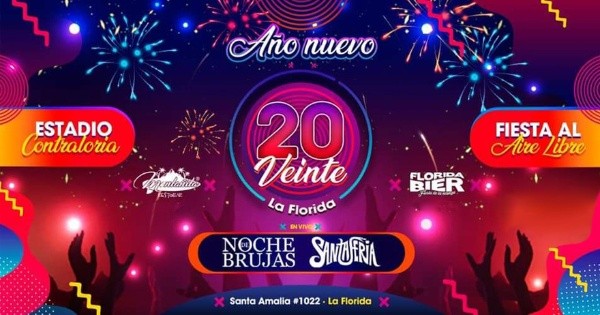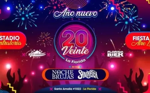 Qué:Montañita Restobar y Florida Bier presentanAño Nuevo 2020. La fiesta más grande del sector sur de Santiago. Al aire libre con 100 metros de barra, música en vivo, full pasto,100 metros de barra, estacionamientos, maxima seguridad y tecnología. Noche de Brujas, Santaferia y otros, se harán cargo del espectáculo en vivo.