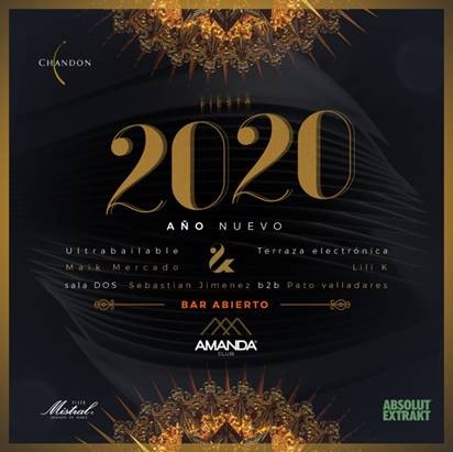 El primer ambiente será la“Terraza Electrónica”con hits de los principales DJ’s internacionales (Lili K). Además, los que asistan a la fiesta, encontrarán también elSalón “Ultrabailable”que contará con Maik Mercado. Finalmente, Club Amanda tendrála “Sala dos”con el Dj Sebastián Jiménez, B2B Dj Pato Valladares y un ambiente pensado especialmente en satisfacer a los que esperan una fiesta que dure hasta la madrugada del 1 de enero de 2020.